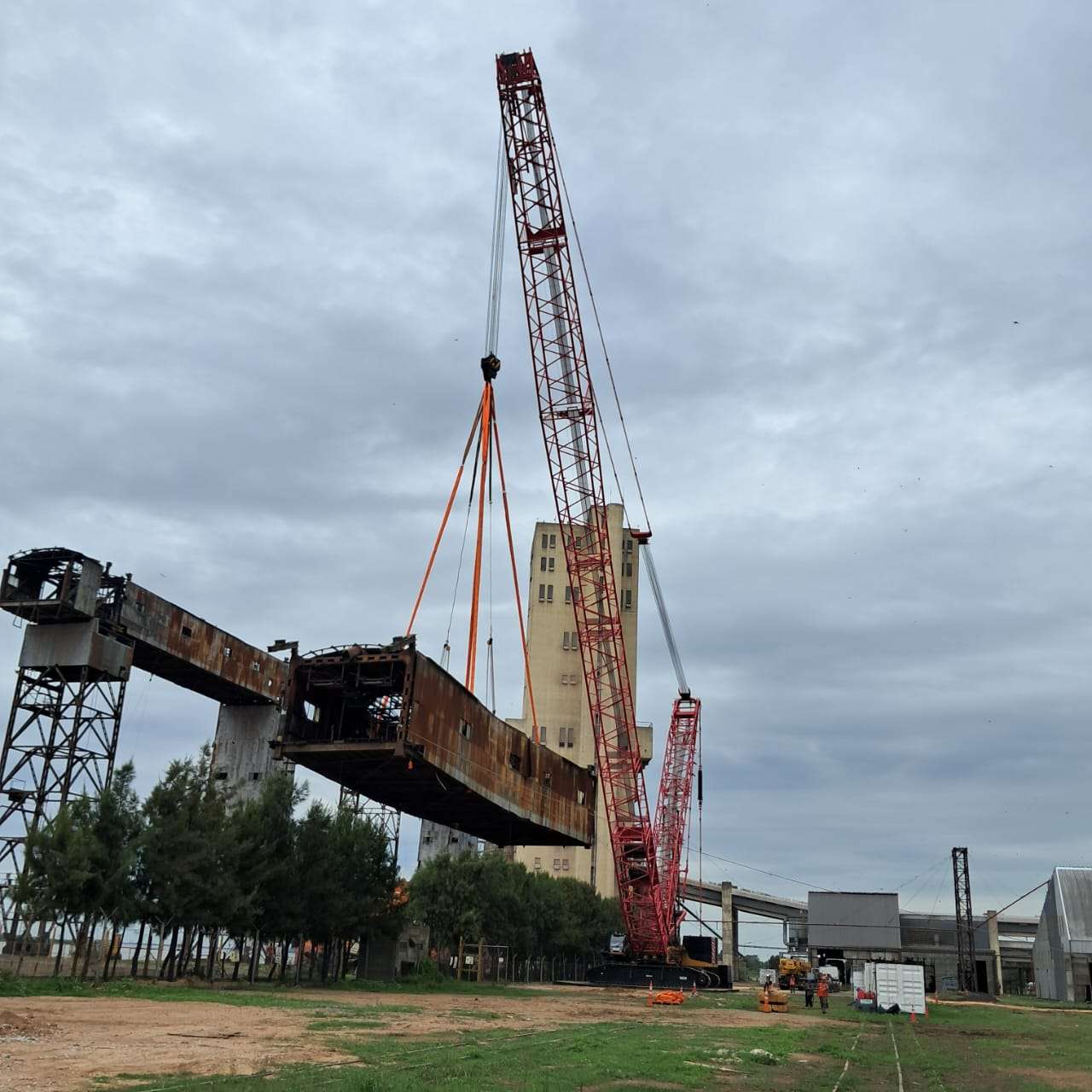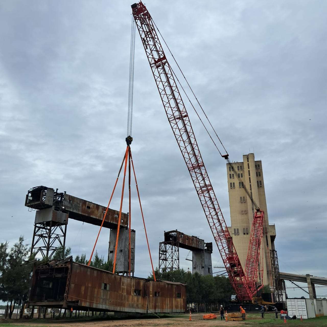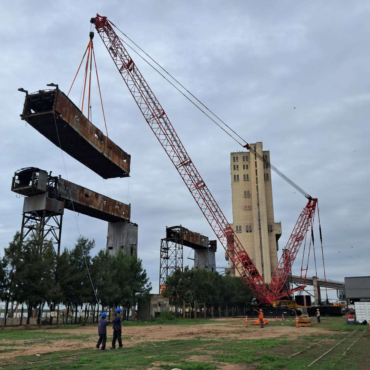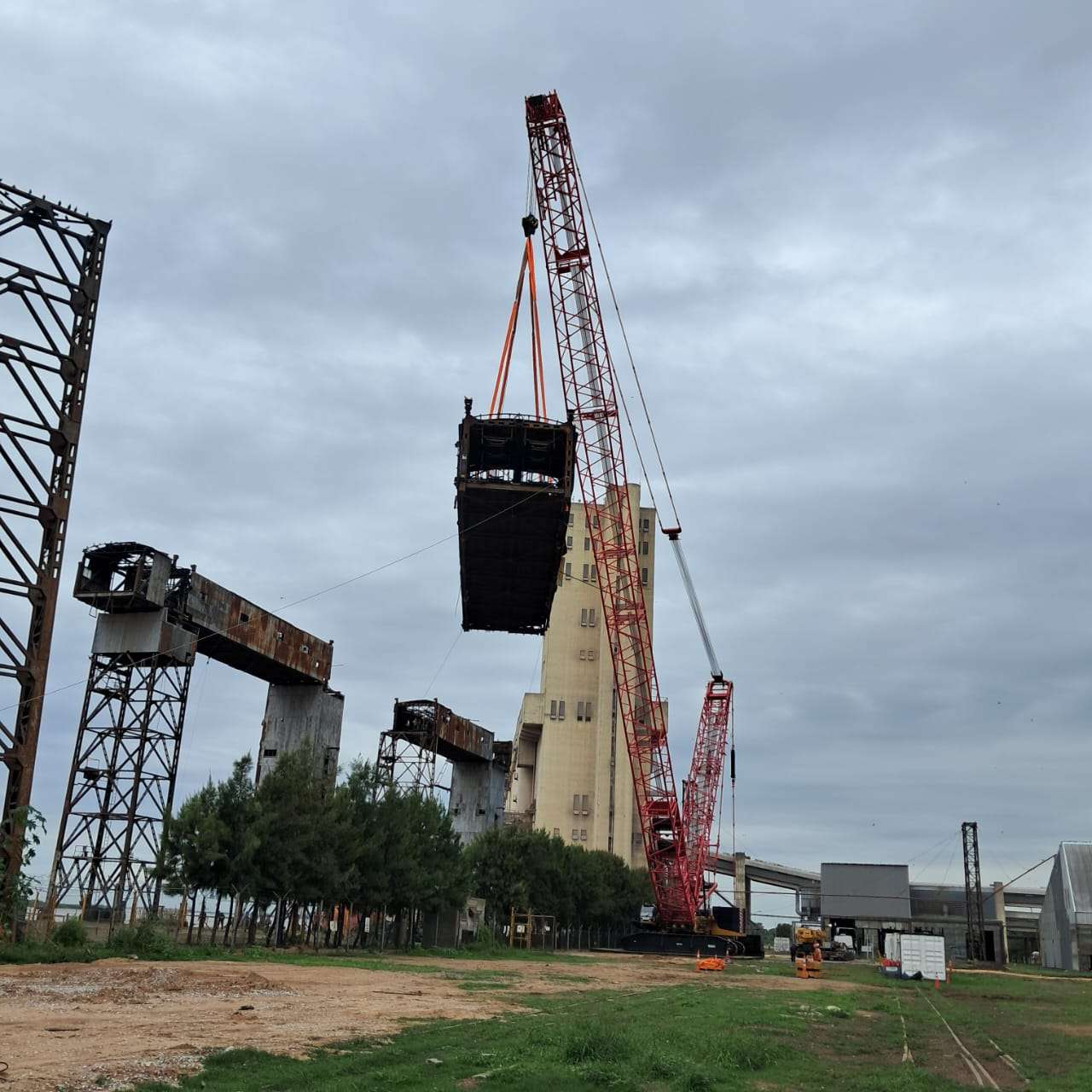 En una terminal portuaria de Rosario llevamos adelante el desmontaje de 11 galerías de gran porte afectadas por un incendio, en un contexto de alta exigencia operativa. La intervención implicó el análisis estructural de cada componente y la planificación detallada de las maniobras de izaje, priorizando la seguridad en cada etapa. Ejecutamos el trabajo en obra con precisión técnica, asegurando una remoción controlada de las estructuras y minimizando riesgos en un entorno industrial activo.